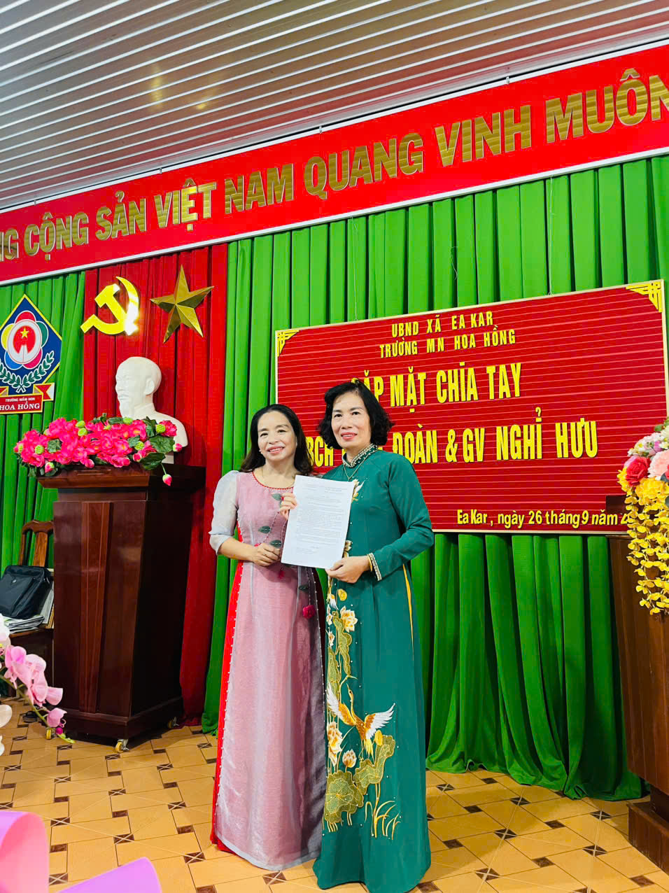 Sáng ngày 26/09/2025 Trường MN Hoa Hồng đã tổ chức hội nghị viên chức – người lao động năm học 2025 – 2026. Sau hội nghị là chương trình chia tay ban chấp hành công đoàn và giáo viên nghỉ hưu theo chế hộ.