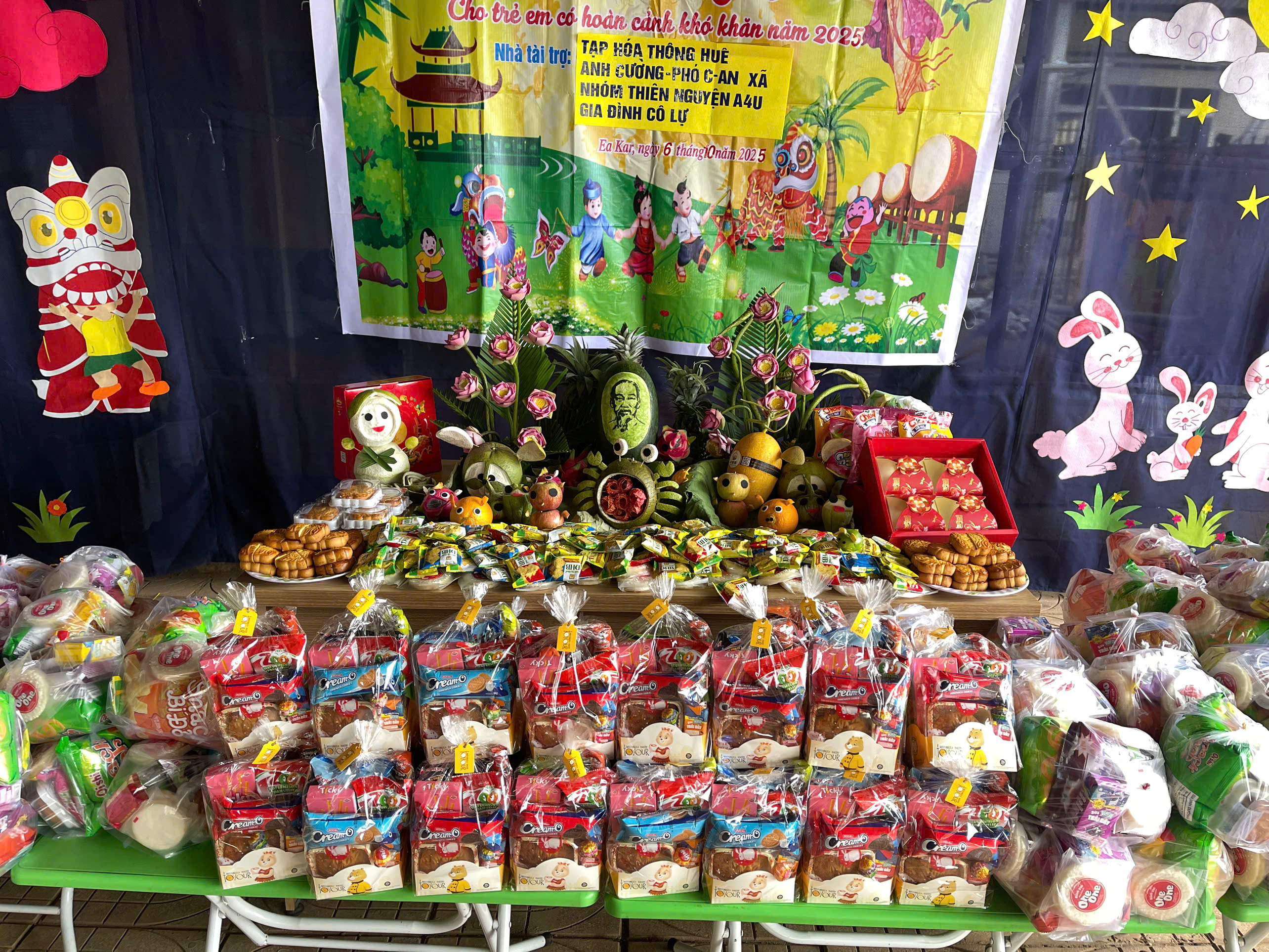 Nhà trường xin chân thành cảm ơn đến các nhà tài trợ: Tạp hóa Thông Huê, Anh Cường đại diện cho phó công an xã Ea Kar, nhóm thiện nguyện A4U, gia đình cô Lự.